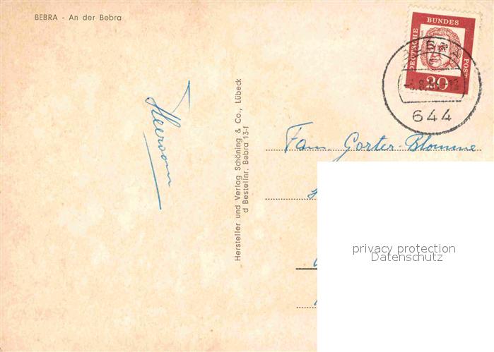 72869653 alte Postkarte Bebra Fachwerk Kirche an der Bebra postalisch gelaufen Erhaltung siehe scans [LiesaD40] KatCode: 11110006632003