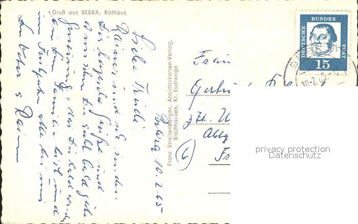 72146822 alte Postkarte Bebra Rathaus postalisch gelaufen Erhaltung siehe scans KatCode: 11110006632003