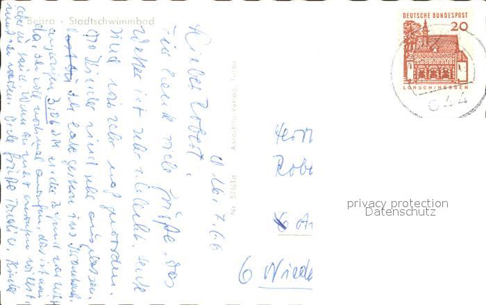 72129001 alte Postkarte Bebra Stadtschwimmbad postalisch gelaufen Erhaltung siehe scans KatCode: 11110006632003