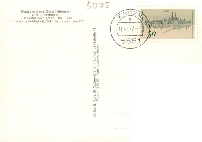 73894333 alte Postkarte Bechen Rheinland Plaetzmuehle im herrlichen Dhuental Panorama postalisch gelaufen Erhaltung siehe scans [WerneD78] KatCode: 11110005378012