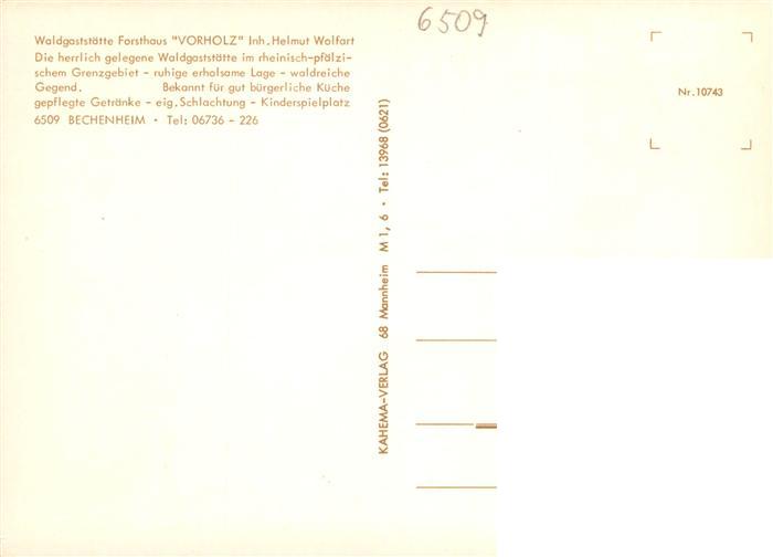 73893481 Bechenheim Waldgaststaette Forsthaus Vorholz Kartbahn postalisch nicht gelaufen Erhaltung siehe scans [WerneD78] KatCode: 11110007331005