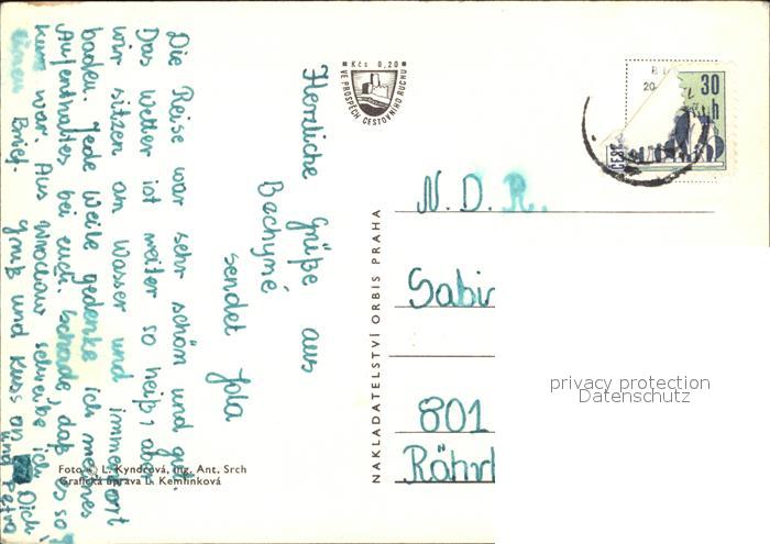 old postcard Bechyne Teilansichten postalisch gelaufen Erhaltung siehe scans