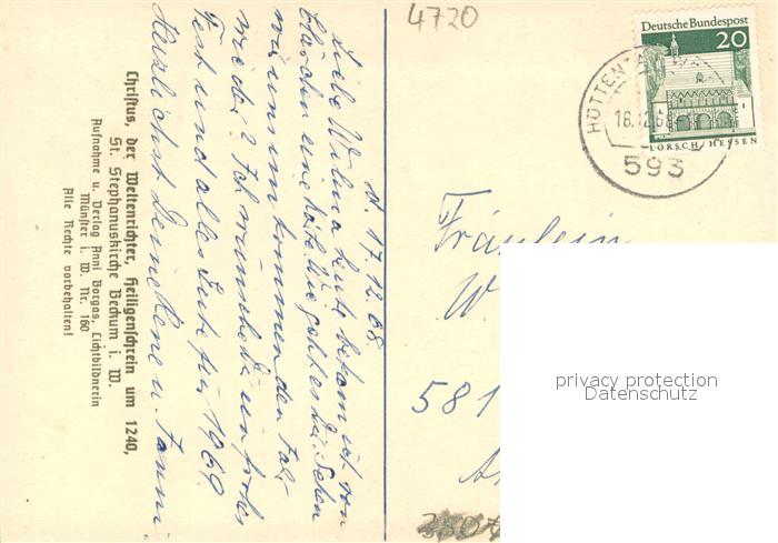73690143 alte Postkarte Beckum Westfalen St. Stephanskirche Christus der Weltenrichter Heiligenschrein um 1240 postalisch gelaufen Erhaltung siehe scans [FriedD77] KatCode: 11110005570008