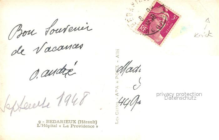 13580053 carte postale Bedarieux Hôpital La Providence postalisch gelaufen Erhaltung siehe scans [FriedD77] KatCode: 11170034134028