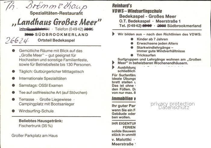 72533603 Bedekaspel Landhaus Grosses Meer Hotel Restaurant Kloen Schnack Grosses Meer postalisch nicht gelaufen Werbekarte (keine Postkarte) Erhaltung siehe scans [FriedD77 kt118box] KatCode: 11110003452023