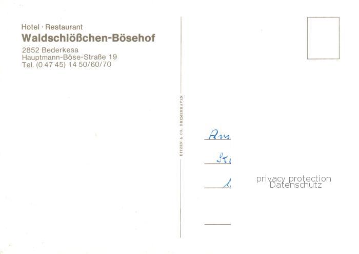 73843669 Bederkesa Bad Hotel Restaurant Waldschloesschen Boesehof postalisch nicht gelaufen Erhaltung siehe scans [WerneD78] KatCode: 11110003352003