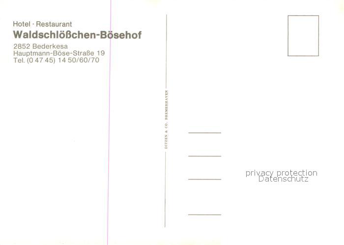73724662 Bederkesa Bad Hotel Restaurant Waldschloesschen Boesehof postalisch nicht gelaufen Erhaltung siehe scans [FriedD77] KatCode: 11110003352003