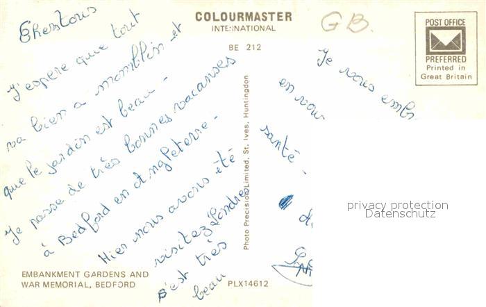 Bedford Bedfordshire Embankment Gardens and War Memorial postalisch nicht gelaufen Erhaltung siehe scans [LiesaD40]