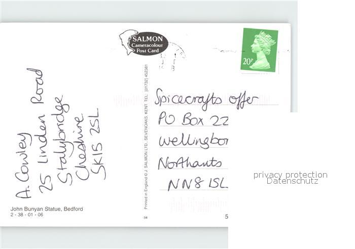 old postcard Bedford Bedfordshire John Bunyan Statue postalisch gelaufen Erhaltung siehe scans