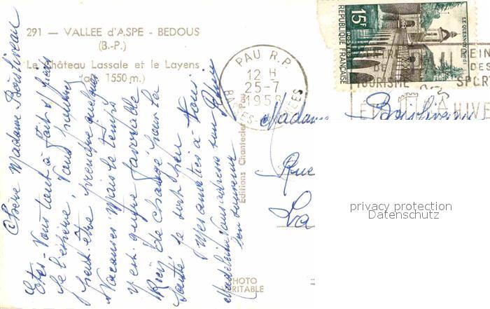 12809358 carte postale Bedous Chateau Lassale et le Layens postalisch gelaufen Erhaltung siehe scans [FriedD77] KatCode: 11170064264104
