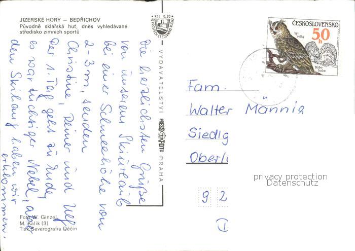 old postcard Bedrichov Friedrichswald Jizerske Hory Puvodne sklarska hut dnes vyhledavane stredisko zimnich sportu postalisch gelaufen Erhaltung siehe scans