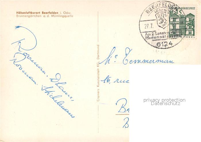 33698253 alte Postkarte Beerfelden Odenwald Brunnengaertchen Muemlingquelle postalisch gelaufen Erhaltung siehe scans [WerneD78] KatCode: 11110006437002