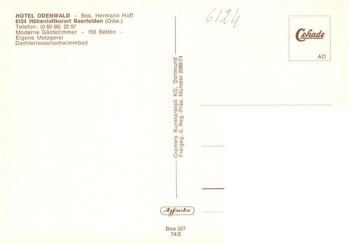 73887077 Beerfelden Odenwald Fliegeraufnahme mit Hotel Odenwald postalisch nicht gelaufen Erhaltung siehe scans [FriedD77] KatCode: 11110006437002