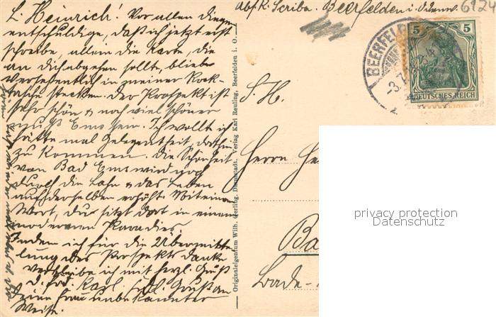 73706203 alte Postkarte Beerfelden Odenwald Gesamtansicht mit den Hoehenzuegen nach d. Bergstr. postalisch gelaufen Erhaltung siehe scans [LiesaD40] KatCode: 11110006437002