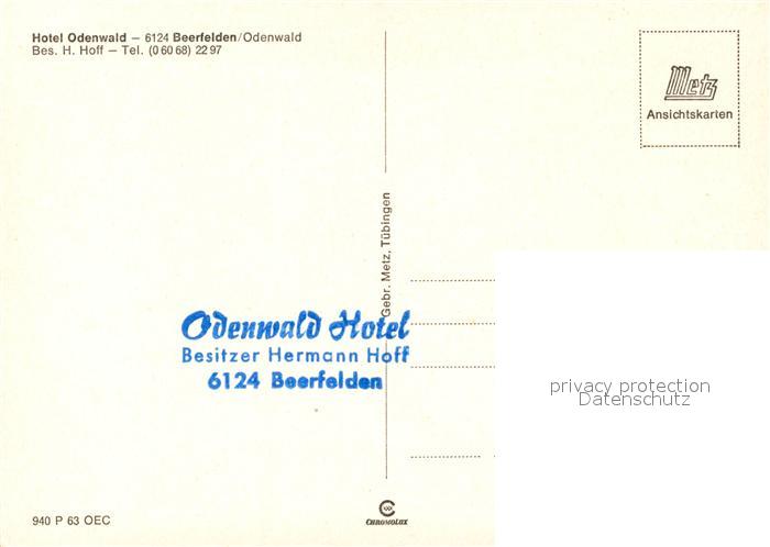 73574249 Beerfelden Odenwald Hotel Odenwald Restaurant postalisch nicht gelaufen Erhaltung siehe scans [FriedD77] KatCode: 11110006437002