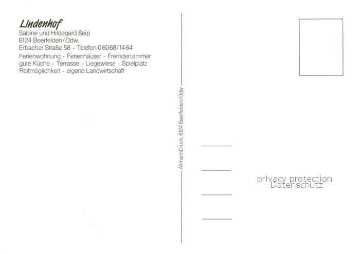 73090315 Beerfelden Odenwald Lindenhof postalisch nicht gelaufen Erhaltung siehe scans [NatalD47] KatCode: 11110006437002