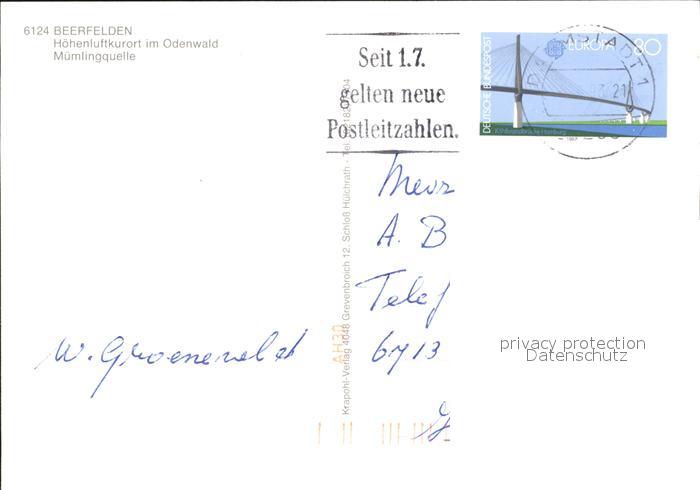 72255450 alte Postkarte Beerfelden Odenwald Muemlingquelle postalisch gelaufen Erhaltung siehe scans KatCode: 11110006437002