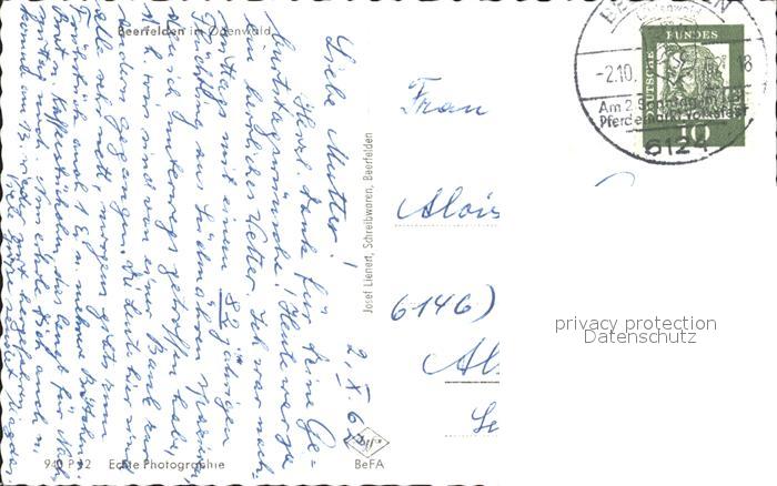 72102198 alte Postkarte Beerfelden Odenwald Totalansicht postalisch gelaufen KatCode: 11110006437002