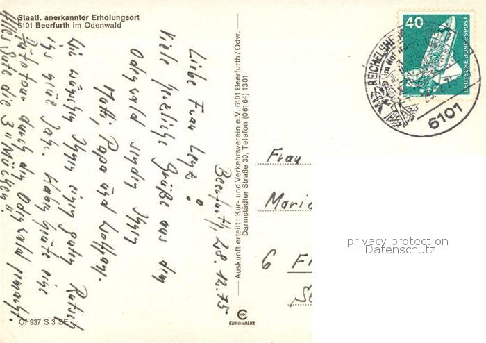 73171885 alte Postkarte Beerfurth Landschaftspanorama Erholungsort Minigolf Heilquelle Gersprenztal Angelteich postalisch gelaufen Erhaltung siehe scans [FriedD77] KatCode: 11110006437013
