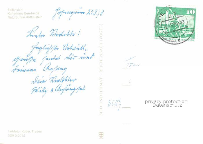 72626526 alte Postkarte Beerheide Teilansicht Kulturhaus Naturbuehne Roethelstein postalisch gelaufen Erhaltung siehe scans [FriedD77] KatCode: 11110014178170