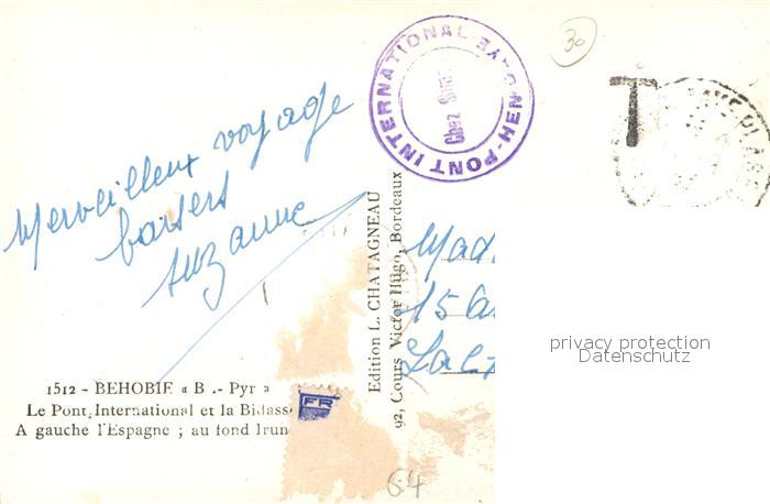 13530657 carte postale Behobie Fliegeraufnahme Pont-International postalisch gelaufen Erhaltung siehe scans [LiesaD40] KatCode: 11170064164545