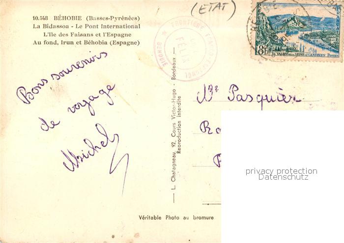 13537582 carte postale Behobie La Bidassoa Pont International Ile des Faisans et l’Espagne au fond Irun et Behobia Espagne postalisch gelaufen Erhaltung siehe scans [FriedD77] KatCode: 11170064164545