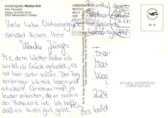 73668599 alte Postkarte Behrensdorf Ostsee Fliegeraufnahme mit Campingplatz Waldes-Ruh postalisch gelaufen Erhaltung siehe scans [WerneD78] KatCode: 11110001057004