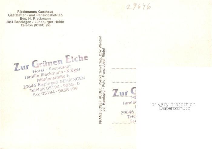 73568903 Behringen Bispingen Rieckmanns Gasthaus postalisch nicht gelaufen Erhaltung siehe scans [PaolaD17] KatCode: 11110003358002