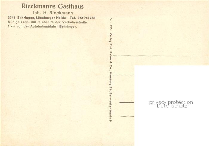 73730698 Behringen Bispingen Rieckmanns Gasthaus Landschaft Lueneburger Heide postalisch nicht gelaufen Erhaltung siehe scans [FriedD77] KatCode: 11110003358002
