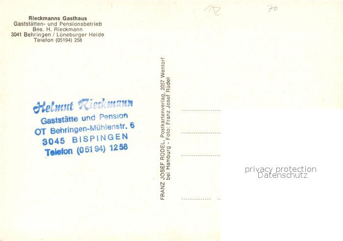 73569344 Behringen Bispingen Rieckmanns Gasthaus postalisch nicht gelaufen Erhaltung siehe scans [PaolaD17] KatCode: 11110003358002