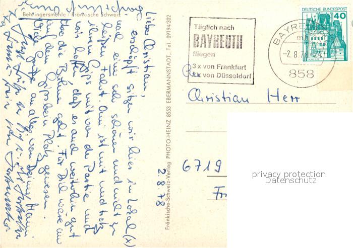 73223801 alte Postkarte Behringersmuehle postalisch gelaufen Erhaltung siehe scans [LiesaD40] KatCode: 11110009474129