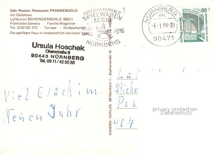 73101660 alte Postkarte Behringersmuehle Cafe Pension Frankengold Restaurant Terrasse postalisch gelaufen Erhaltung siehe scans [WerneD78] KatCode: 11110009474129