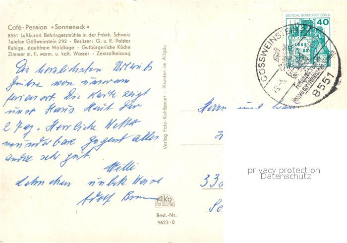 72937301 alte Postkarte Behringersmuehle Cafe Sonneneck Terrasse Gastststube postalisch gelaufen Erhaltung siehe scans [WerneD78] KatCode: 11110009474129