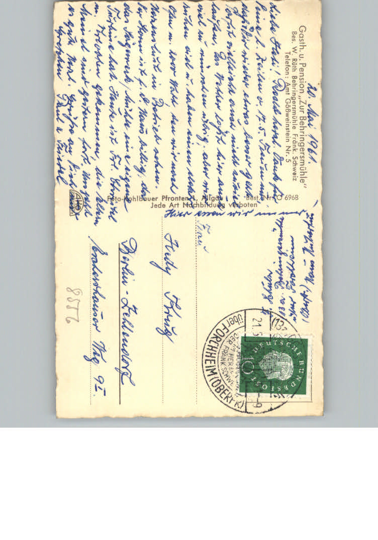 31163194 Behringersmuehle Gasthaus Pension Zur Behringersmuehle postalisch nicht gelaufen KatCode: 11110009474129