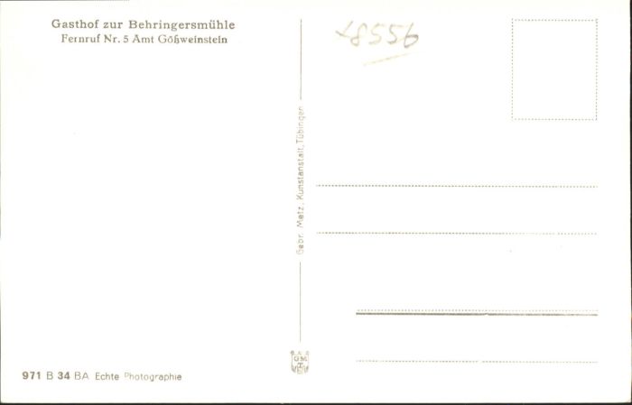 40806727 Behringersmuehle Gasthof zur Behringersmuehle Goessweinstein Fraenkische Schweiz * postalisch nicht gelaufen Alte Ansichtskarte Postkarte Katcode 11110009474129