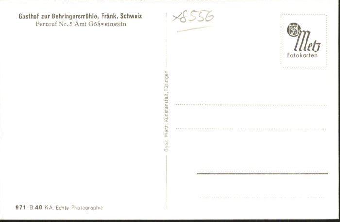 40806733 Behringersmuehle Gasthof zur Behringersmuehle Goessweinstein Fraenkische Schweiz * postalisch nicht gelaufen Alte Ansichtskarte Postkarte Katcode 11110009474129