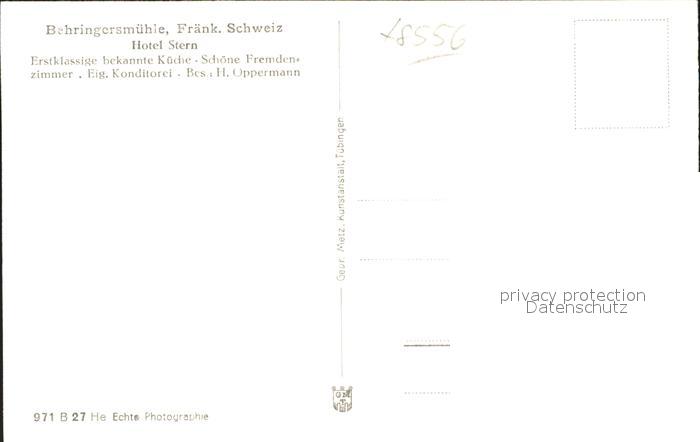 41815310 Behringersmuehle Hotel Stern Fraenkische Schweiz postalisch nicht gelaufen Erhaltung siehe scans Alte Ansichtskarte Postkarte hz_F Katcode 11110009474129