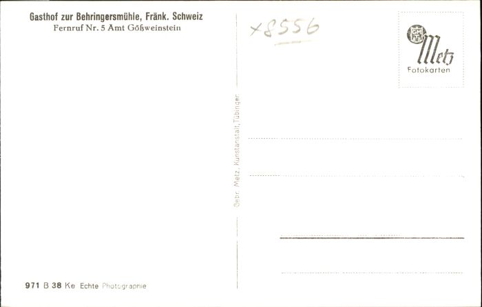 40806032 Behringersmuehle raenkische Schweiz Goessweinstein Gasthof zur Behringersmuehle * postalisch nicht gelaufen Alte Ansichtskarte Postkarte Katcode 11110009474129