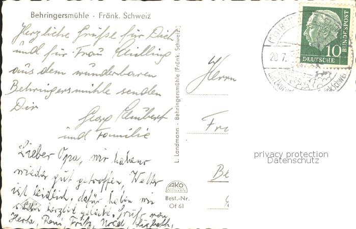 72311675 alte Postkarte Behringersmuehle Talblick Felsen Fraenkische Schweiz postalisch gelaufen Erhaltung siehe scans KatCode: 11110009474129