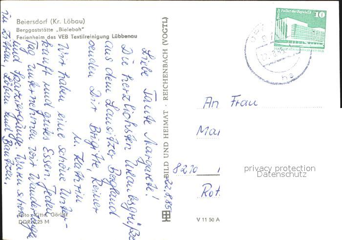 72407967 alte Postkarte Beiersdorf Loebau Berggaststaette Bieleboh Aussichtsturm Ferienheim des VEB Textilreinigung postalisch gelaufen Erhaltung siehe scans KatCode: 11110014286010