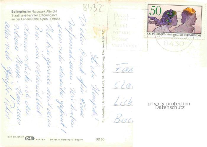 74049097 alte Postkarte Beilngries Tuerme der Stadt Kirche Schloss Hirschberg postalisch gelaufen Erhaltung siehe scans [FriedD77] KatCode: 11110009176114