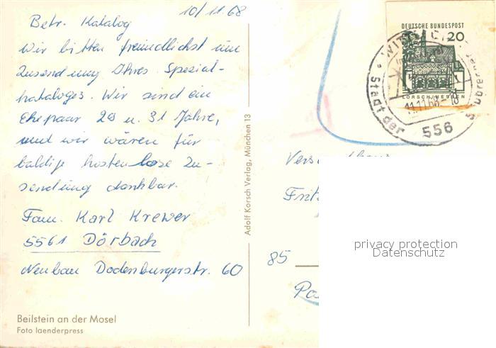 72791180 alte Postkarte Beilstein Mosel postalisch gelaufen Erhaltung siehe scans [NatalD47] KatCode: 11110007135007