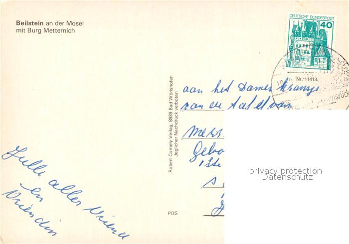 73308125 alte Postkarte Beilstein Mosel Burg Metternich postalisch gelaufen Erhaltung siehe scans [NatalD47] KatCode: 11110007135007