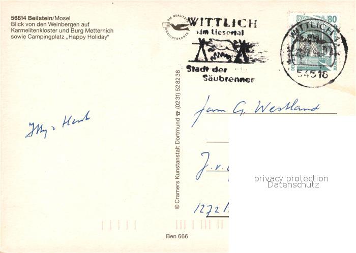 73306107 alte Postkarte Beilstein Mosel Karmelitenkloster und Burg Metternich mit Campingplatz Happy Holiday postalisch gelaufen Erhaltung siehe scans [WerneD78] KatCode: 11110007135007