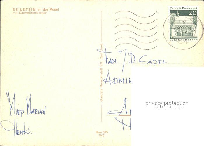 72492991 alte Postkarte Beilstein Mosel Karmelitenkloster postalisch gelaufen Erhaltung siehe scans KatCode: 11110007135007