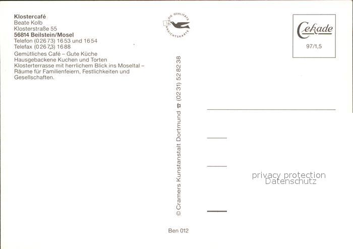 71944646 Beilstein Mosel Kloster-Cafe Beate Kolb postalisch nicht gelaufen Erhaltung siehe scans KatCode: 11110007135007