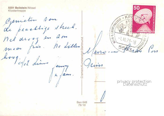 72906031 alte Postkarte Beilstein Mosel Klostertreppe postalisch gelaufen Erhaltung siehe scans [AndreD76] KatCode: 11110007135007