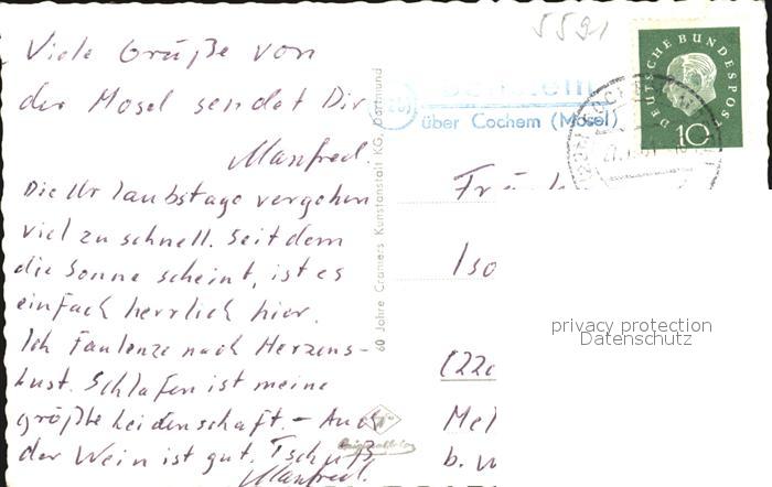 72451580 alte Postkarte Beilstein Mosel Klostertreppe Markt postalisch gelaufen Erhaltung siehe scans KatCode: 11110007135007
