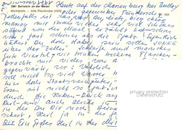 72954490 Beilstein Mosel Marktplatz Alte Pfarrkirche Weinstuben Fachwerkhaus Altstadt postalisch nicht gelaufen Erhaltung siehe scans [FriedD77] KatCode: 11110007135007