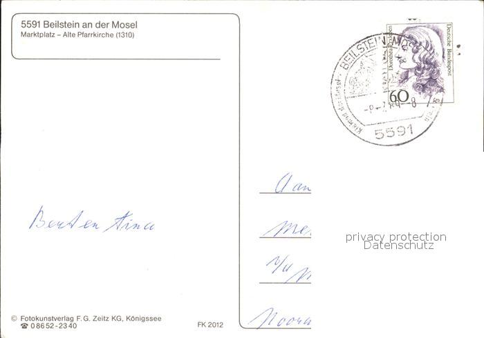 72424580 alte Postkarte Beilstein Mosel Marktplatz Alte Pfarrkirche postalisch gelaufen Erhaltung siehe scans KatCode: 11110007135007